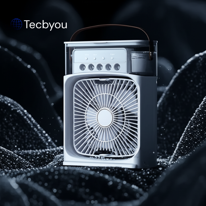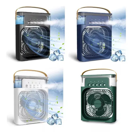 Ventilador 3 em 1 com Umidificador e Climatizador – LED Noturno, Portátil, Ajuste de Ar para Casa ou Escritório